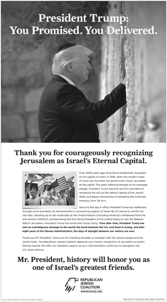 Mark Landler, “For Trump, an Embassy in Jerusalem Is a Political Decision, Not a Diplomatic One,” The New York Times. 6.12.2017. https://www.nytimes.com/2017/12/06/us/politics/trump-embassy-jerusalem-israel.html