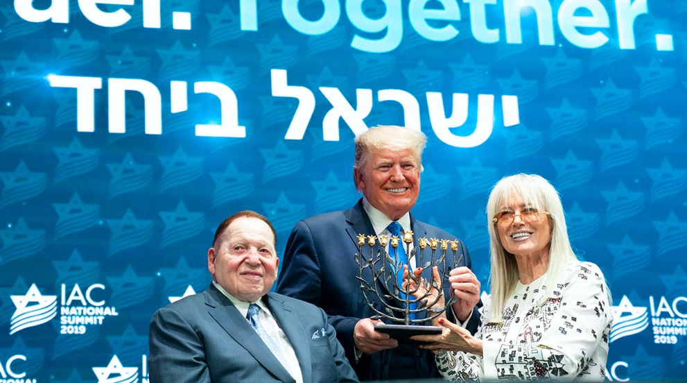 Sheldon Adelson ve eşi Miriam, 2016, 2020 ve 2024 seçimlerinde Trump’ı ve diğer cumhuriyetçi namzetleri desteklemek üzere en az 600 milyon dolar harcamışlar ve alışılmamış derecede “cömert” olan bu bağışlar karşılığında Trump’tan bazı sözler almışlardı. Trump, “Ben sözümü tuttum, değil mi Miriam?” derken bunu kasdediyordu.